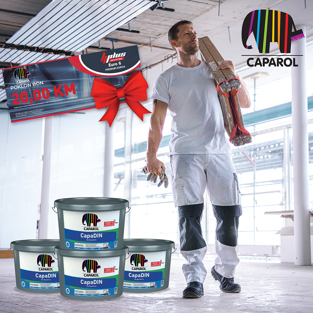 Uz kupnju 4 kante vrhunske unutarnje boje CapaDIN u pakiranju od 15 L preuzmi svoj poklon karticu za gorivo u vrijednosti od 20 KM!